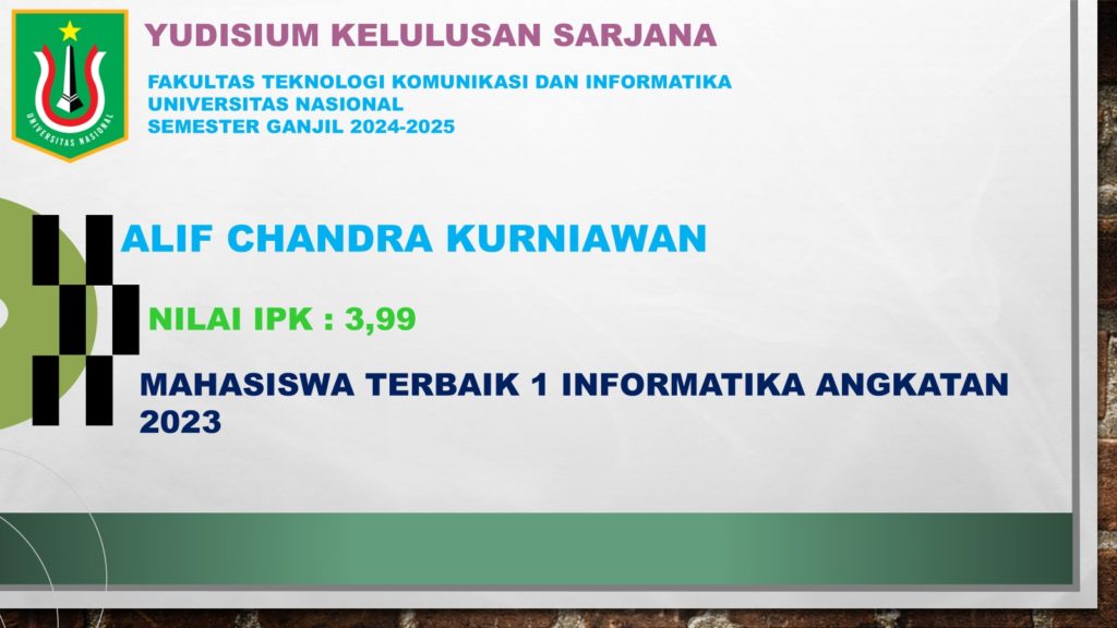 Selamat Atas Prestasi sebagai Mahasiswa Terbaik Semester Ganjil 2024-2025 Program Studi Informatika, Fakultas Teknologi Komunikasi dan Informatika – Universitas Nasional