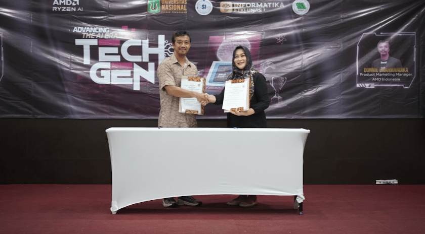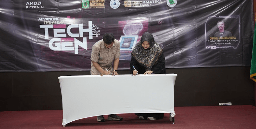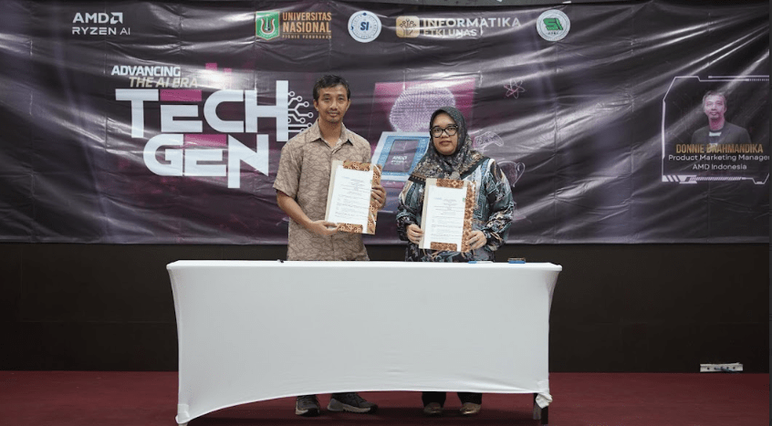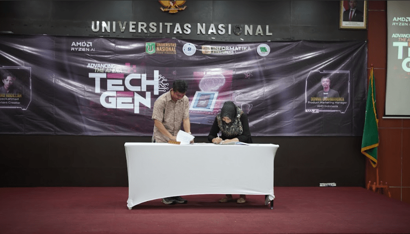 Pada Senin, 13 April 2026, telah dilaksanakan penandatanganan Implementation of Arrangement antara PT Computesta Digital Indonesia (Agensi AMD Indonesia) dan Fakultas Teknologi Komunikasi dan Informatika Universitas Nasional di Aula Universitas Nasional. Kegiatan ini bertujuan untuk menyelaraskan program kegiatan bersama dalam upaya mengembangkan potensi para pihak, serta meningkatkan sinergitas sumber daya yang dimiliki guna mewujudkan visi dan misi masing-masing pihak. Kerja sama ini diwujudkan melalui pelaksanaan program kegiatan bersama yang disepakati oleh para pihak dalam rangka pengembangan potensi serta peningkatan sinergi sumber daya.
