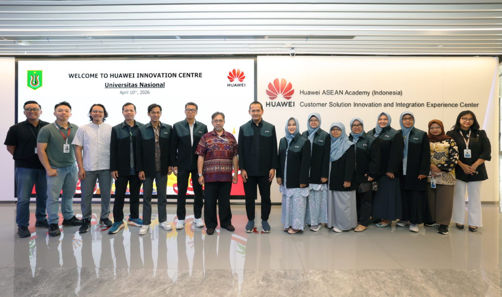 Jakarta, 10 April 2026 — Fakultas Teknologi Komunikasi dan Informatika (FTKI) Universitas Nasional melakukan kunjungan resmi ke Huawei Innovation Center yang berlokasi di Wisma Mulia 2 Lantai 30, Jakarta, pada Jumat, 10 April 2026 pukul 09.30 hingga 11.30 WIB. Kegiatan ini dihadiri oleh perwakilan FTKI Universitas Nasional, yaitu Dr. Agung Triayudi, S.Kom., M.Kom selaku Dekan, Ir. Endah Tri Esti Handayani, MMSI selaku Wakil Dekan, Ratih Titi Komalasari, S.T., M.M., MMSI selaku Ketua Program Studi Informatika, Dr. Andrianingsih, S.Kom., MMSI selaku Ketua Program Studi Sistem Informasi, Ir. Asrul Sani, ST, MT, M.Kom, Ph.D selaku Ketua Program Studi Magister Teknologi Informasi, Rima Tamara Aldisa, S.Kom., M.Kom selaku Sekretaris Program Studi Informatika, Albaar Rubhasy, S.Si., MTI selaku Sekretaris Program Studi Sistem Informasi, Nurhayati, S.Si., MTI selaku Sekretaris Program Studi Magister Teknologi Informasi, Sari Ningsih, S.Si., MM selaku Ketua UPM FTKI, serta Ahmad Rifqi, S.Kom., MMSI selaku Ketua UPPMK.