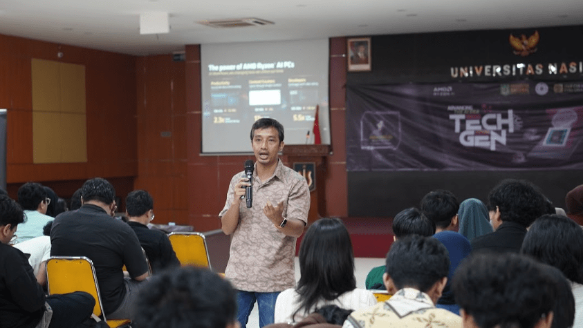 Dalam sesi yang berlangsung interaktif, para peserta mendapatkan wawasan mengenai penggunaan AI lokal untuk berbagai kebutuhan, mulai dari coding hingga workflow content creation. Teknologi yang diperkenalkan didukung oleh laptop berprosesor AMD Ryzen™ AI Series, yang memungkinkan mahasiswa bekerja lebih cepat, efisien, dan tetap praktis, bahkan tanpa koneksi internet.