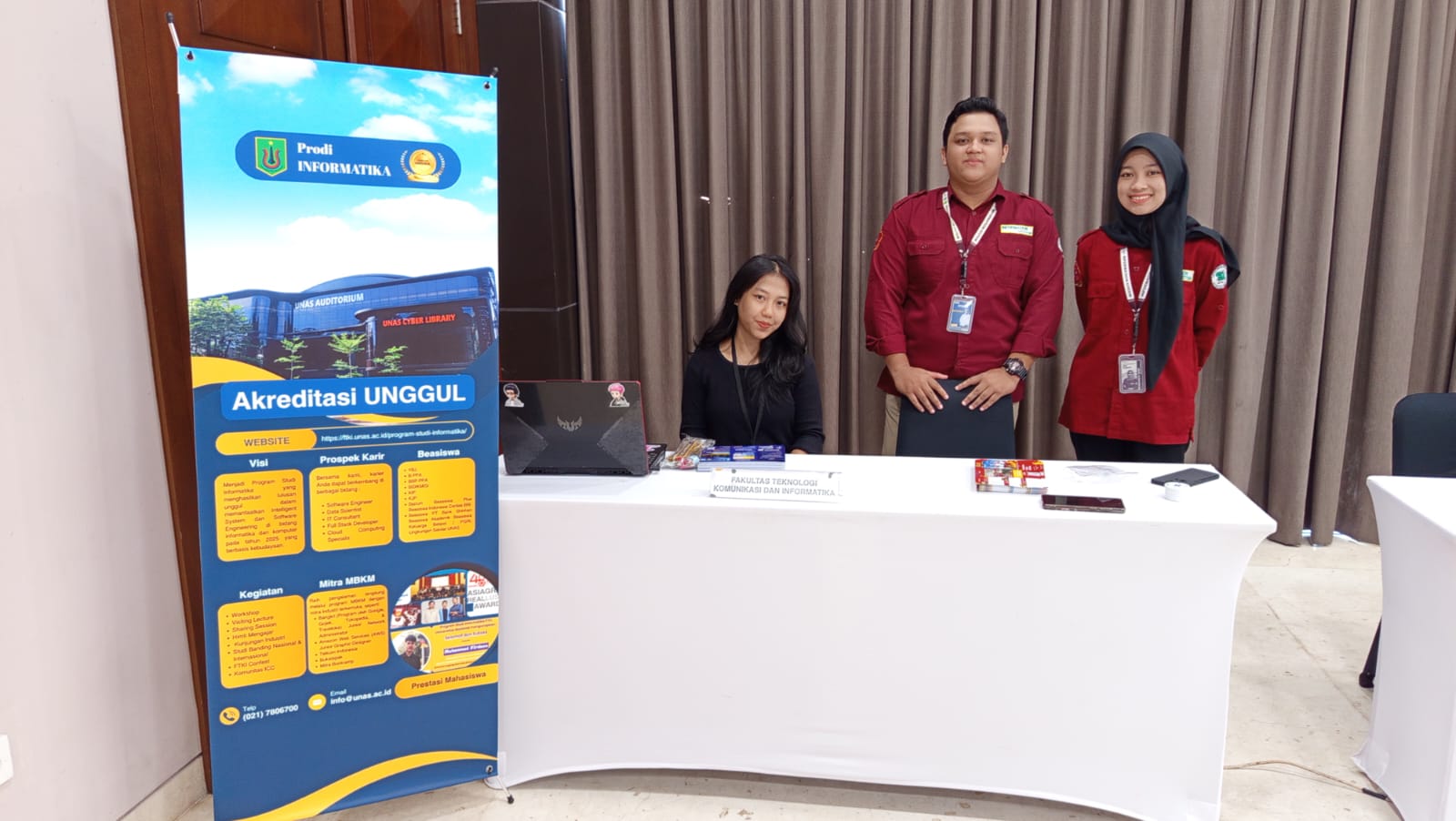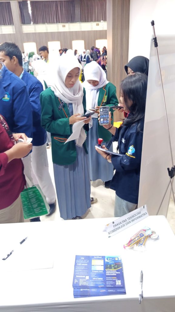 Salah satu yang mendapat perhatian besar dari para peserta adalah promosi Program Studi Sistem Informasi, Fakultas Teknologi Komunikasi dan Informatika (FTKI), Universitas Nasional. Melalui booth khusus, tim dosen dan mahasiswa aktif Program Studi Sistem Informasi memberikan penjelasan langsung kepada para siswa mengenai gambaran perkuliahan, kompetensi lulusan, serta peluang karier di bidang teknologi informasi dan bisnis digital.